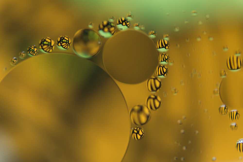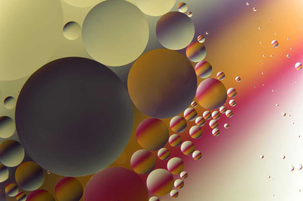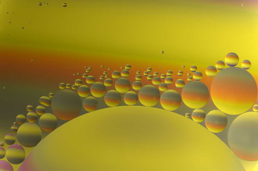 Die Technik: Makrofotografie. Winzige Öltropfen schwimmen in einem Wasserbad. Ein Bildausschnitt, nur wenige Millimeter groß, wird entsprechend vergrößert zu einem Fenster ins Universum. Traumhaft schön - schön zum träumen ...